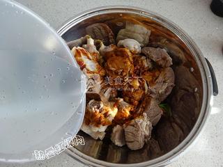 辅料:盐 (3g) 红烧酱油 (25ml) 料酒 (30ml) 葱姜 (20g) 清水 (800ml) 腐乳 (2块) 腐乳汁 (20ml) 油膏 (5ml) 白糖 (10g) 香叶 (5片) 八角 (2个) 花椒 (1g) 香菜 (10g)